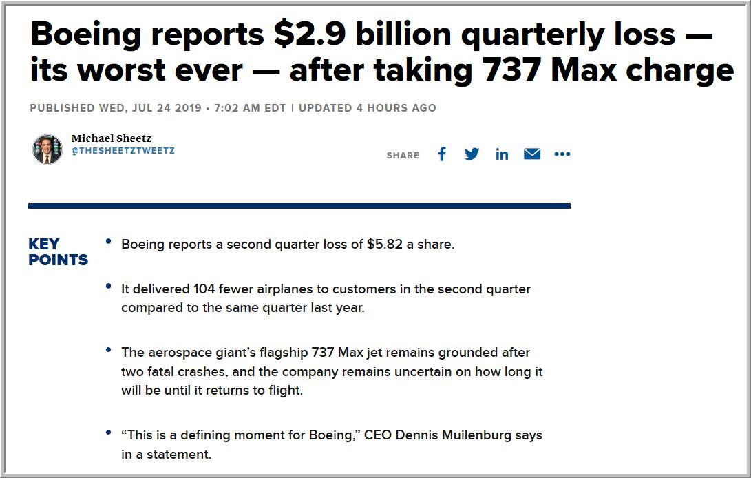 بوينج تواجه تهم جنائية خطيرة ، بعد دخول وزارة العدل ووزارة النقل على خط أزمة تحطم طائرتين بوينج من طراز 737 ماكس 8 .. والوزارتان تطلبان معلومات حساسة من الشركة ورسائل ايميل لبعض التنفيذيين في الشركة .. الشركة اغلقت اليوم الاثنين عند 372.28$ على تراجع 6.71$ ,,