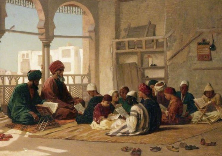 في أواخـر القرن التاسع الميـلادي كان كل مسجد يحتوي على مدرسة أولية ( ابتدائية ) يتعلم فيها الصبيان والبنات .