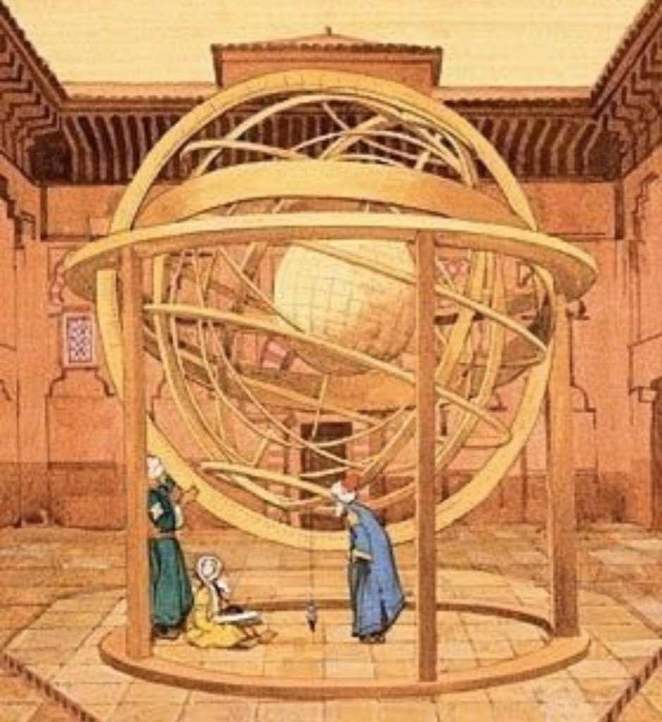 الحضارة الإسلامية كانت أول من أقام المراصد واستعمل المعدات لدراسة الأجرام السماوية .