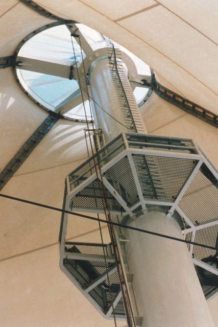 صاري الخيمة يعتبر الجزء الرئيسي للهيكل الانشائي وهو عبارة عن عمود من الصلب بارتفاع 60 م ويدعم الجزء الأكبر من وزن السقف.