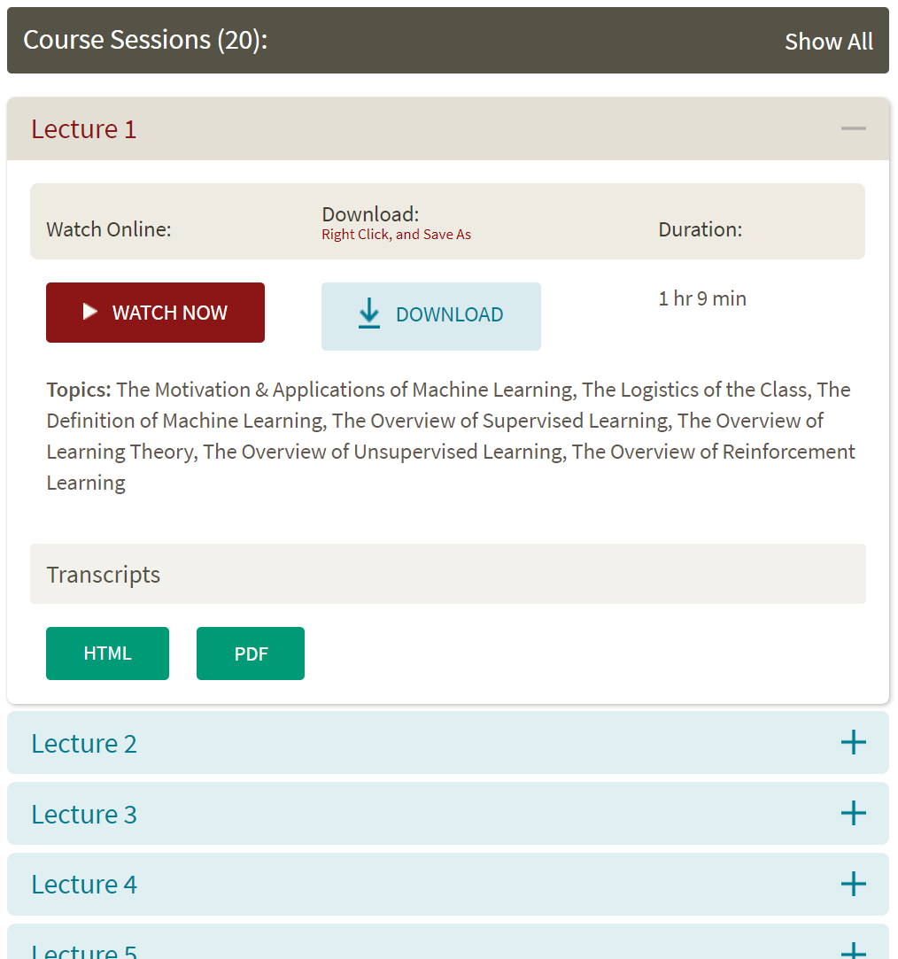 كما تغطي هذه المادة أهم مواضيع تعلم الآلة: التعلم الموّجه و الغير موّجه و التعزيزي و الشبكات العصبية