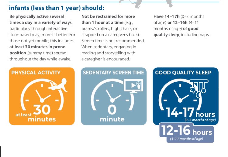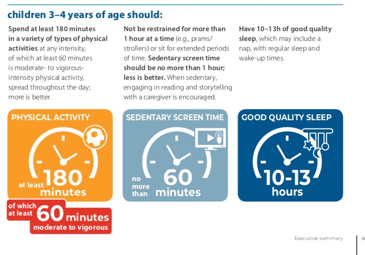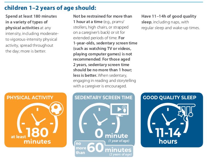 أوجزت لكم في هذا الثريد النصائح و الإرشادات التي أطلقتها منظمة الصحة العالمية للأطفال (أقل من ٥ سنوات) و ذلك في معدل النشاط البدني و الوقت أمام الشاشة و معدل النوم في اليوم..و تم تحديدها بناءً على العمر..