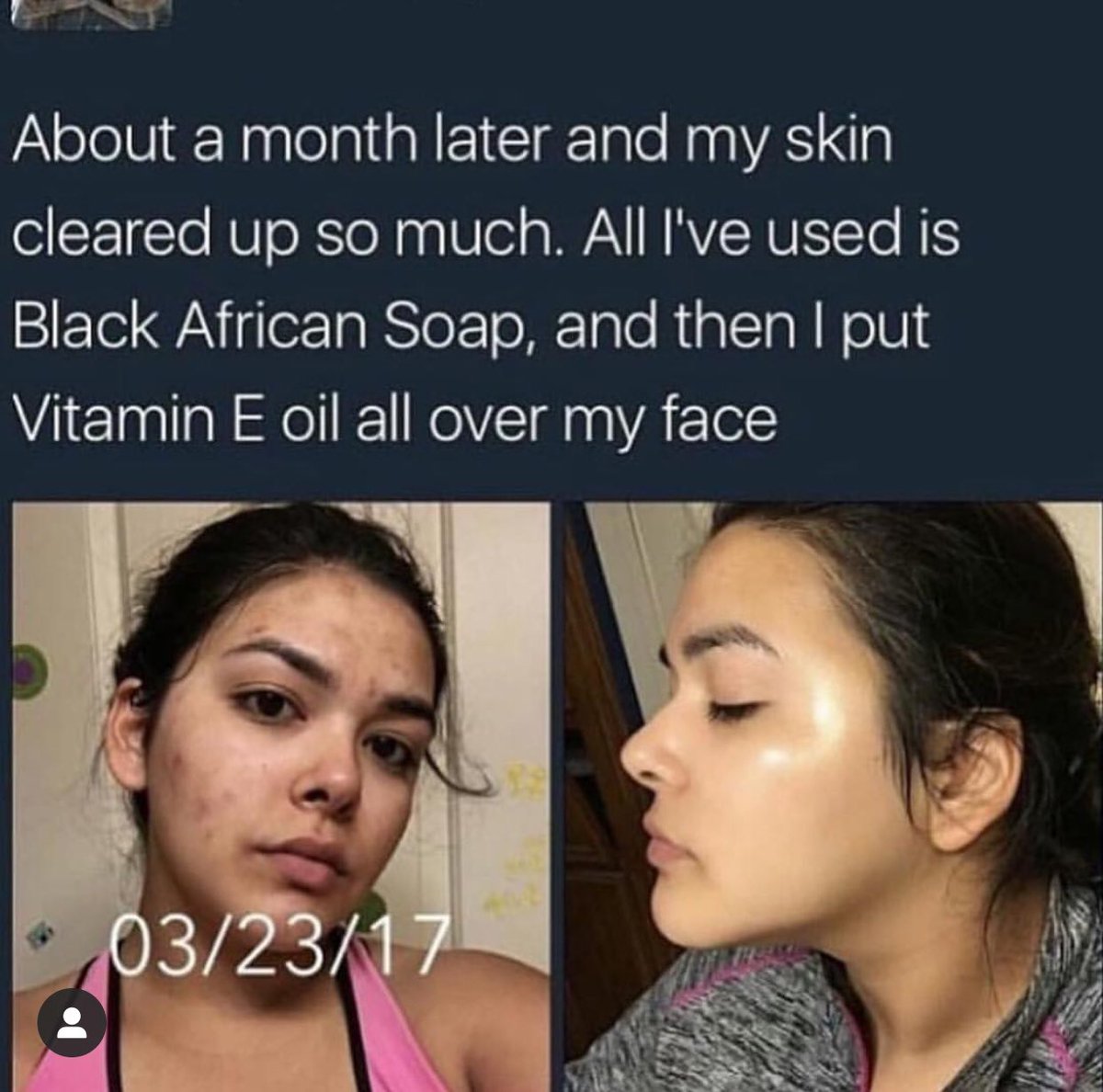 وطبعاً من أهم الأشياء الي لازم تصير بعد تغسلين بالصابون الأفريقي الخام هو الترطييييب لأنه ينشف الوجه وغالبيه الي يستخدمون الصابون الأفريقي ينصحون بإستخدام زبدة الشياء ويُفضل (البيضاء المخفوقه)بس تكون بدون عطور ولاتخافون انها تسد مسامكم لأن مقياسها في سد المسام هو (0)comedogenic.