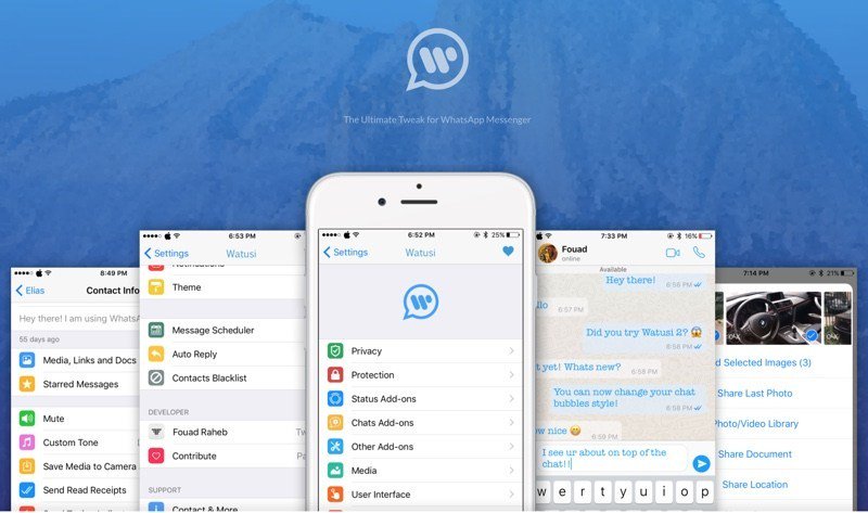 سابع هذه الادوات هي اداة Watusi لتضيف مزايا هائله لتطبيق الواتسات مثل اخفاء الظهور والثيم الداكن واظهار الرسائل المحذوفه وامكانية حذفها باي وقت وتحويل رسائل غير محدوده وارسالها ايضا وعشرات المزايا الاضافية