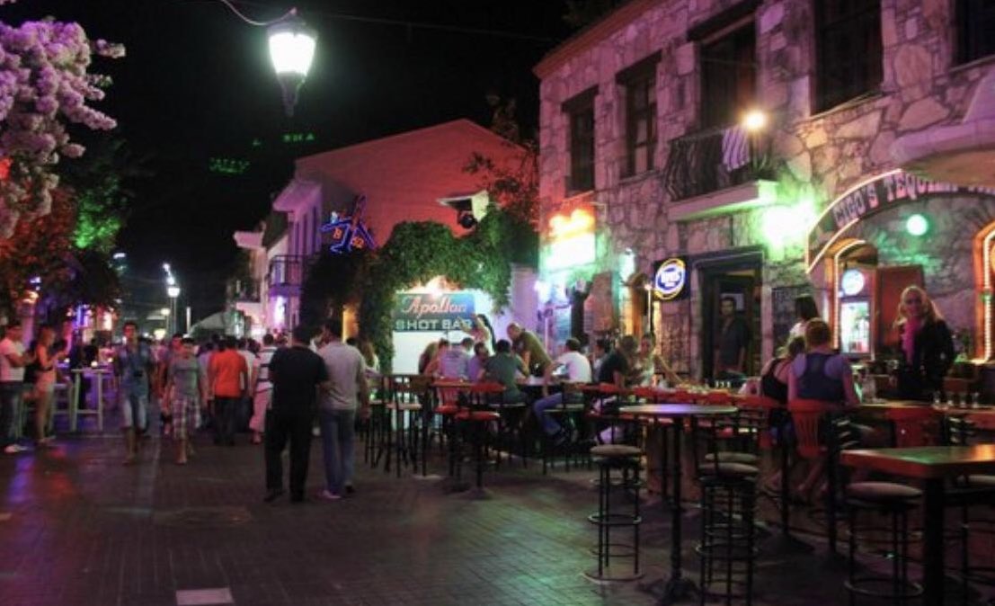 طبعا الحياة الليلية في مرمريس بعيده كل البعد عن الاستجمام والهدوء خصوصا في (بار ستريت) في فترة ما بعد الغروب تعم الاحتفالات و يتحول الهدوء الى صخب والشواطئ ما تلقى فيها احد