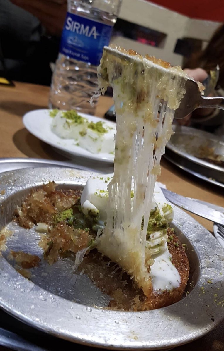 ممكن اشرحلكم شوي عنها لانها مو كنافه عادية الكنافة يسوها على الفحم وبتكون مقرمشة من برى ومحشيه بجبنه تركيه طريه من جوه و يحط عليها قطعة ايسكريم لما يجتمع طعم الجبنه الحاره مع الاسكريم البارد والكنافه مقرمشه مبلوله بالشيره هنا سر النكهه😋
