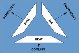توجد ثلاث طرق رئيسية لإخماد الحريق وذلك عن طريق كسر أحد أضلاع المثلث لكي يتوقف الاشتعال وهذه الطرق هي