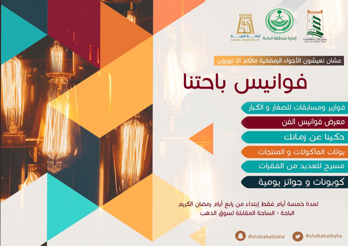 وهنا لا أنسى شكر الداعم الرئيسي لهذه المبادرة بشائر @bashairbahmad وكذلك جامعة الباحة @BahaUniversity وأبو الخير من خلال دورهم الفعال في خدمة المجتمع وتوفير الدعم المادي السخي لمبادرة #فوانيس_باحتنا