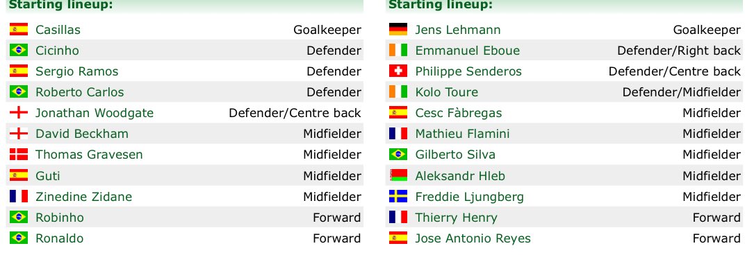 الذهاب كان في ملعب سانتياغو بيرنابيو مباراة كانت صعبة بدع فيها هنري وانتهت المباراة بانتصار ارسنال
