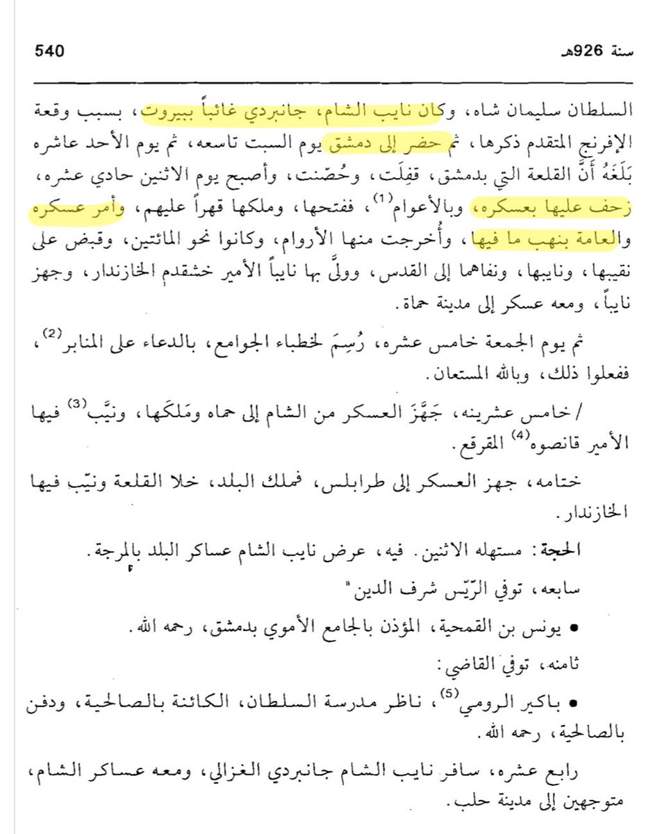 حين تنظر الى افعال جيش القانوني لما دخل دمشق وتغض البصر عن جرائم جان بردي الغزالي (الذي كان هو سبب دخول سليمان وجنده الى دمشق) وكلها مذكور في ذات الكتاب الذي تنقل منه فأنت لا تنشد الحيادية ولا المصداقية !