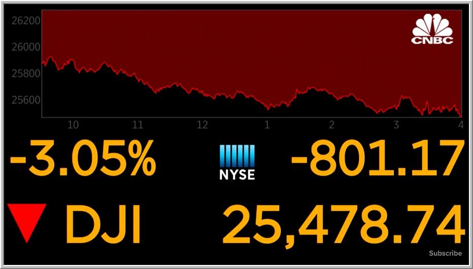اليوم الاثنين 2019/8/05 هبط السوق الأمريكي بما يقارب 770 نقطة بعد تصاعد الحرب التجارية بين الولايات المتحدة والصين ، بعد ان اصدر الرئيس ترامب الأسبوع الماضي قرارا بزيادة الرسوم الجمركية بواقع 10%