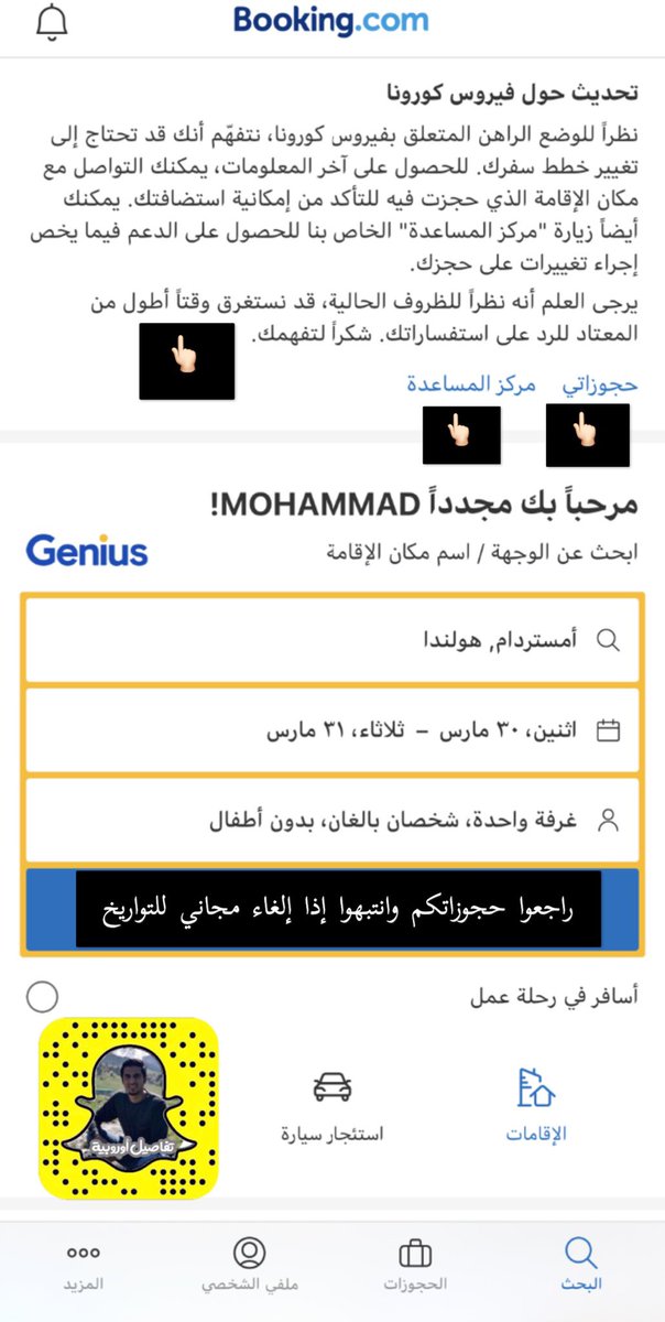 عند حجزك لأماكن الإقامة
