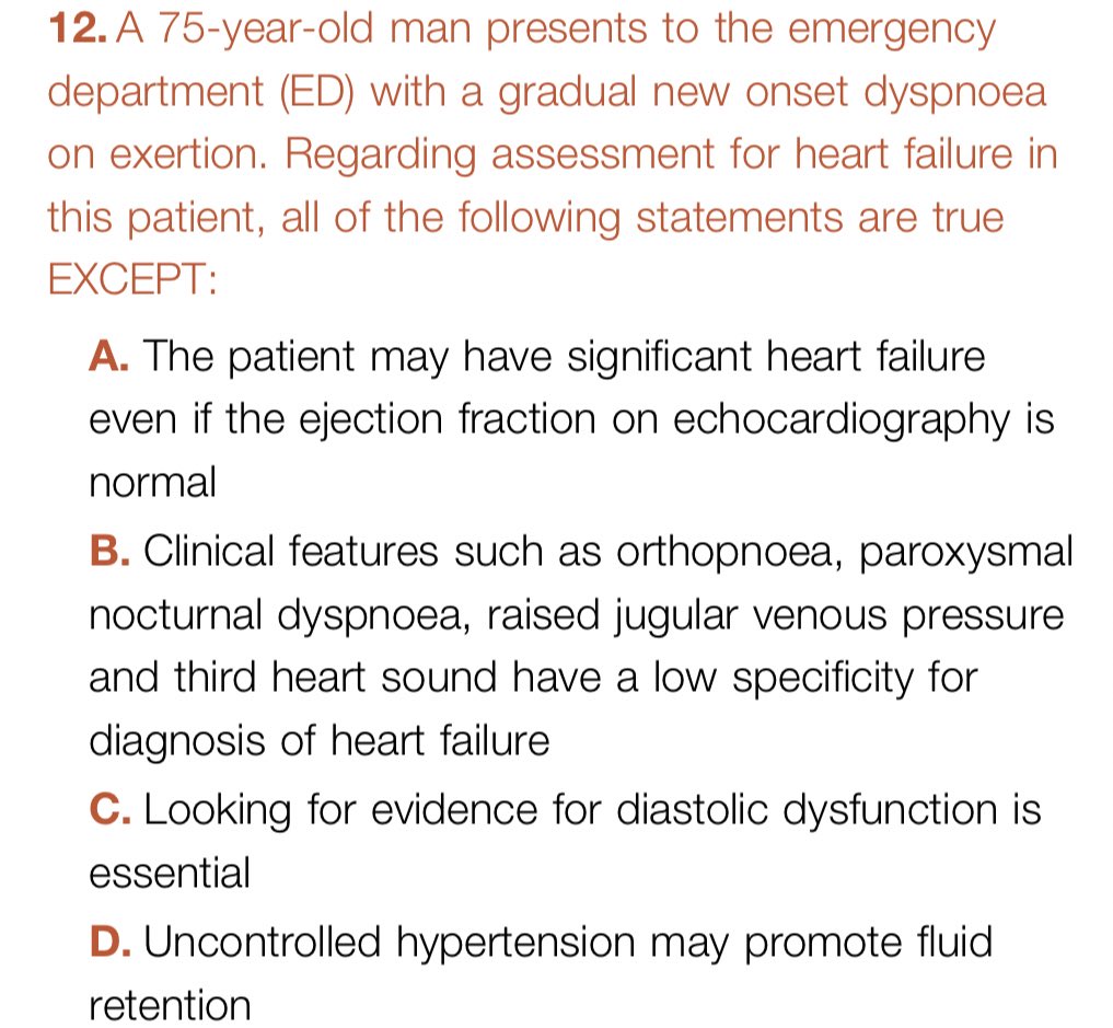 Although at least 50% of patients with heart failure have a low ejection fraction of 40% or less on echocardiography, approximately one-third of all patients have a normal or near normal ejection fraction.