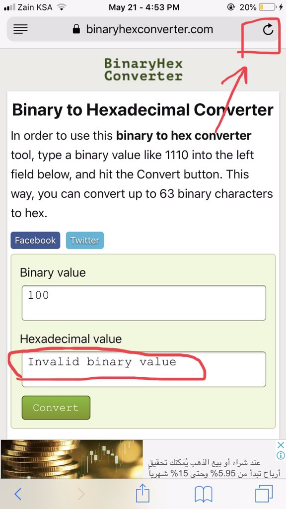 في البداية نحتاج هذا الموقع لتحويل من Binary الى Hexadecimal ..