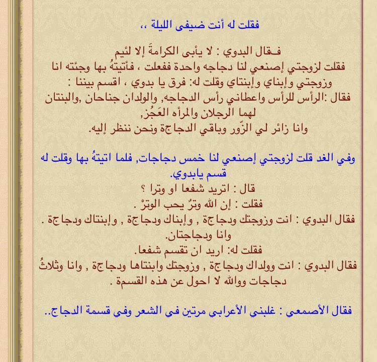 فالتفت إلي بعين مبحلقة وقال لي: الكلم أنثى والجواب ذكر وأنت: