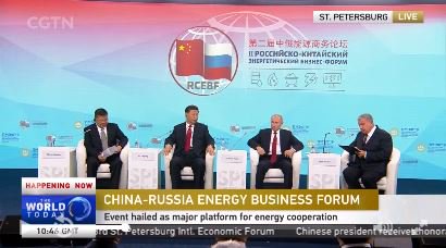 شي جنپنگ وبوتن يحضران منتدى أعمال الطاقة الروسي-الصين في سانت پطرسبورگ. پوتن يعلن الانتهاء، قبل التاريخ المزمع، من إنشاء أنبوب #قوة_سيبيريا بطول 4000كم وبقدرة 2.2 تريليون قدم مكعب سنوياً بقيمة ~ 11مليار$.