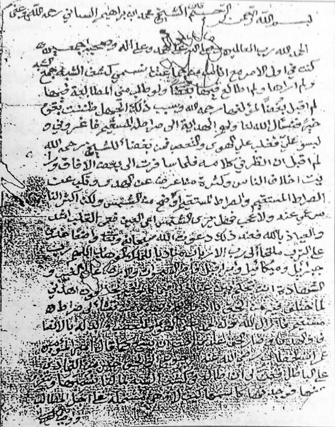 ابن بسام من أهل (العارض) يراسل المتصوف الأشعري إبراهيم الملا ت١٠٤٨هـ مستفتياً فيفتيه بسواد وجه!!