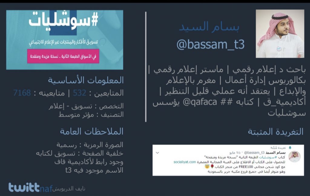 • حساباته في مواقع التواصل .