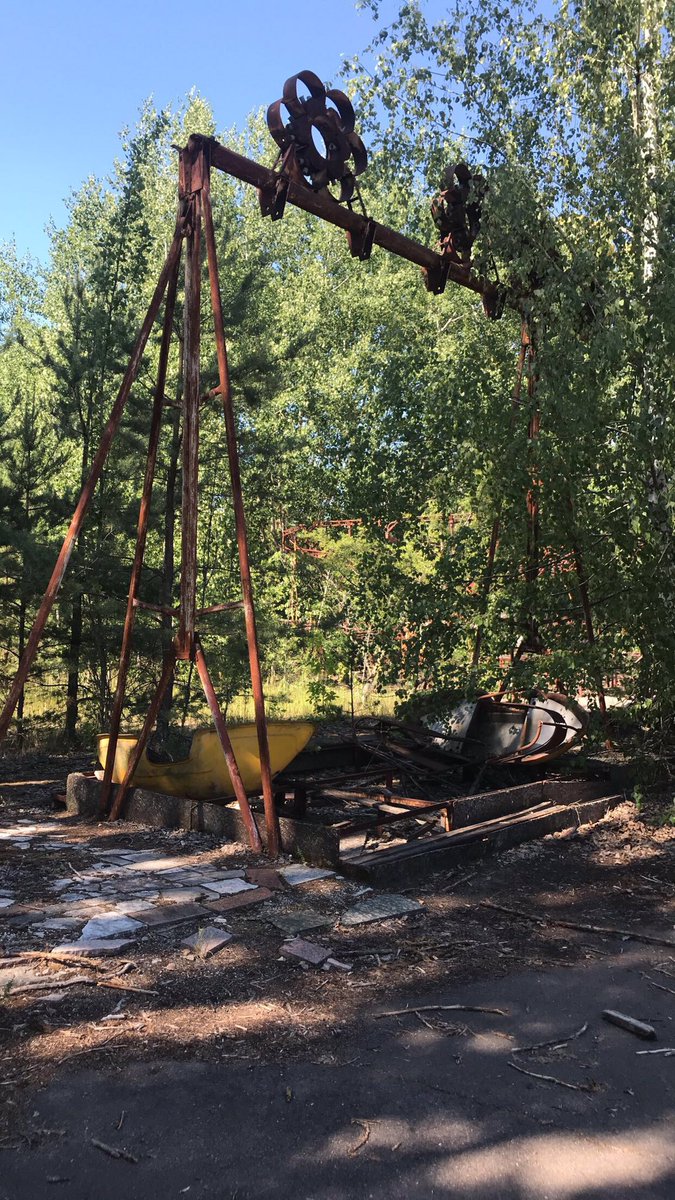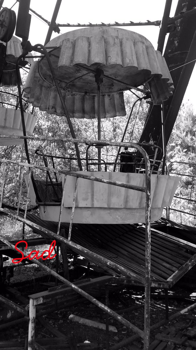 بكرة راح اكمل لكم من مدينة بريبييت وهي اقرب مدينة للمفاعل، المدينة تقع غرب المفاعل وفي الأيام الّي حصل فيها الانفجار كانت الريح تتجه للغرب .. ف لك ان تتخيل كمية التلوث الإشعاعي الّي وصل للمنطقة، هذه المدينة الان لا يسكنها الا جنديين فقط يحرسون بوابة كئيبة عند الدخول:
