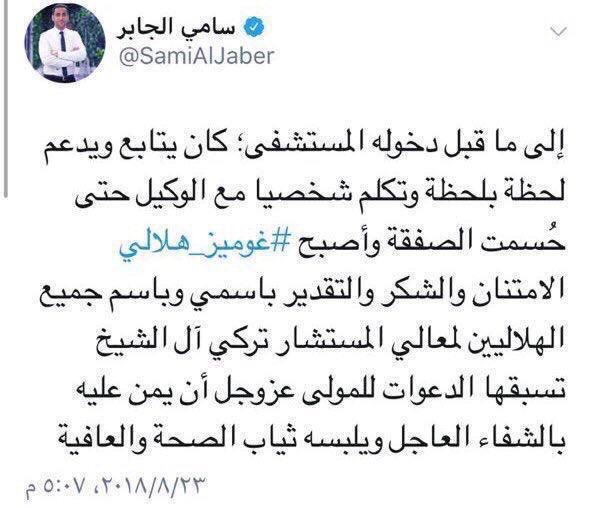 بل وهو #مريض يتابع ويفاوض #للهلال .. وهذا كلام رئيس الهلال #سامي_الجابر