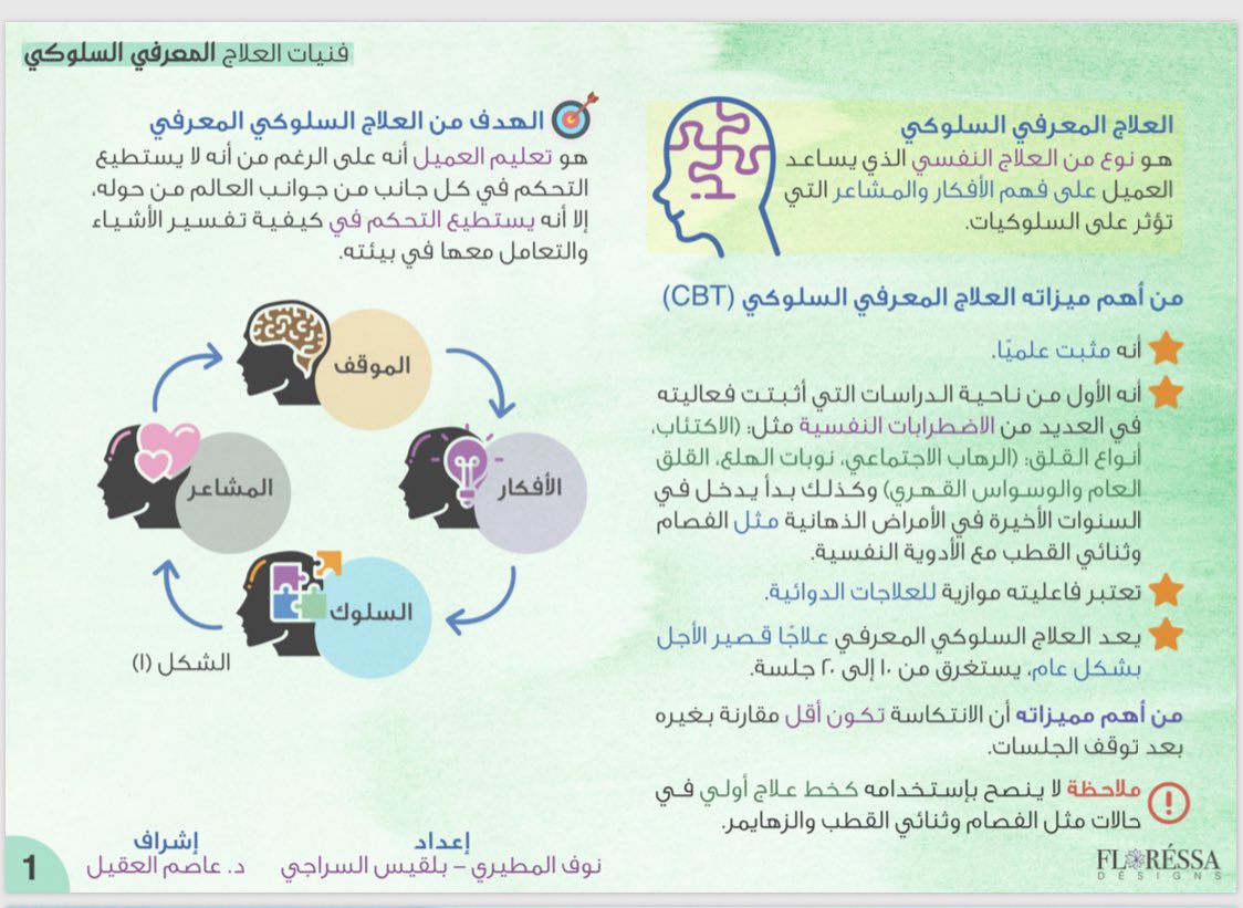 لأن العلاج المعرفي السلوكي علاج مهم، والبعض قد يحرم منه بسبب الظن غير الصحيح أنه فقط جلسات فضفضة ولايقوم على أسس علمية، قمنا بإعداد نبذة عنه وملخص بسيط في التغريدات أعلاه والرابط أدناه، حتى يتشجع المراجع ويقوم بالجلسات5️⃣