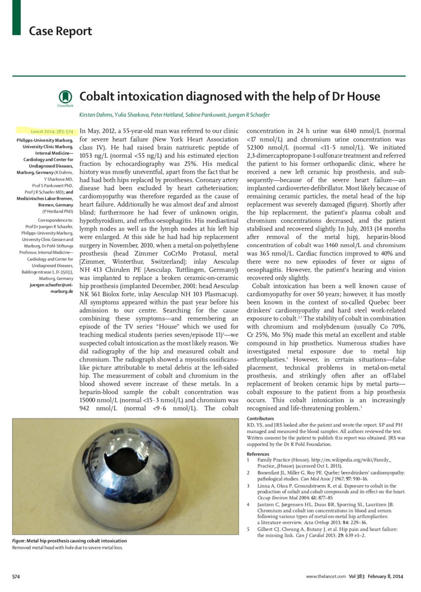 بعد الإستبدال، رجع نشاط عضلة القلب للطبيعي وانخفض معدل الكوبالت في الدم ورجعت صحة المريضة للمستوى الطبيعي.