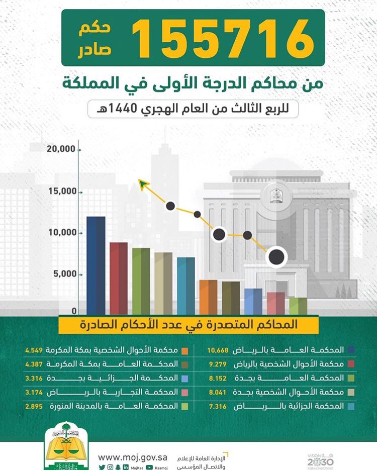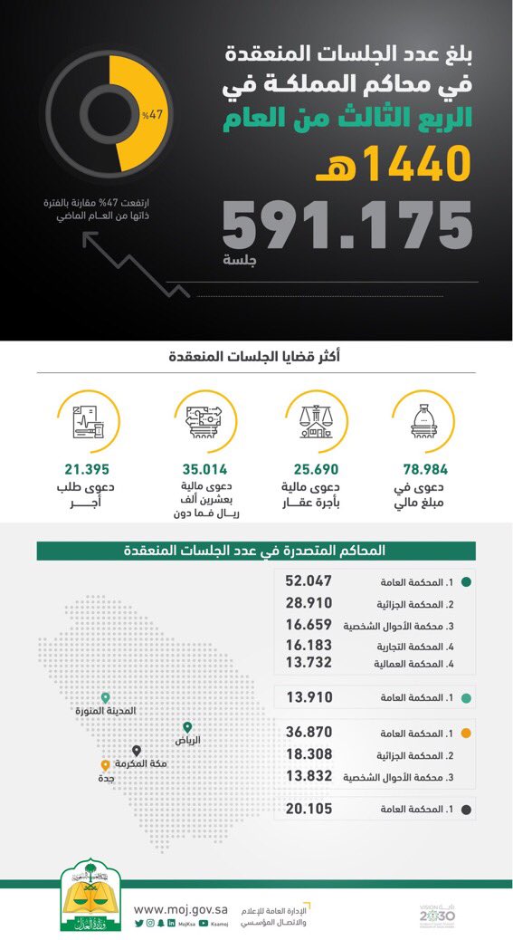 #أحكام_قضائية عدد الجلسات المنعقدة في محاكم المملكة في الربع الثالث ٥٩١.١٧٥ جلسة .