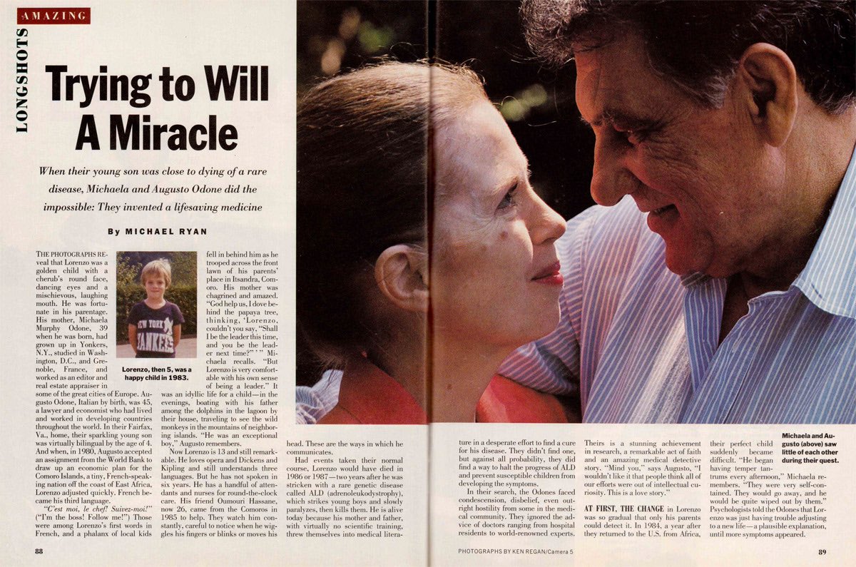 كانت هذه قصة حقيقة لما عرف بزيت لورينزو Lorenzo Oil وهو طفل أمريكي لأب إيطاليين تم تشخيصه ببيضاء الدماغ. وهو مرض إستقلابي بسبب نقص إنزيم معين يؤدي لتجمع الأحماض الدهنية طويلة السلسلة وترسبها في الدماغ مسببة تكسّر في الميلين وهي المادة التي تعمل كعازل للأعصاب لتسمح بنقل السيالات.