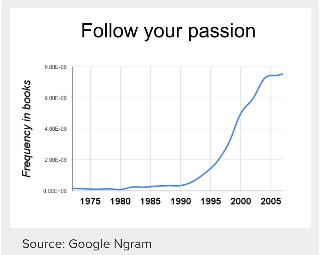 ٦. بالإضافة إلى الصورة النمطية التي تظهرها وسائل الإعلام، دورات التحفيز، الكتب والأفلام، أنو الشخص تعيس إلى أن يلقى شغفه ويتبعه وإلا سيبقى بائس طول عمره !