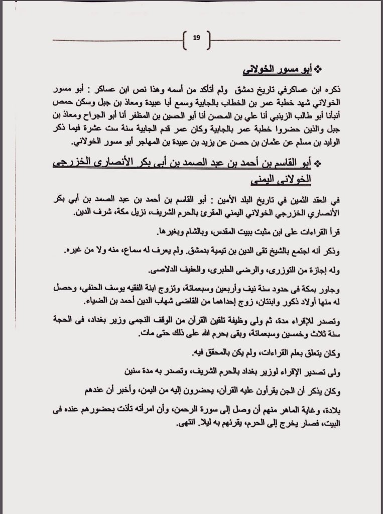 يحتوي على تراجم منقولة من أوثق المصادر التاريخية لـ٧٩ علم من مختلف الأعلام الذين ينتمون لقبيلة #خولان بالنسب أو بالولاء
