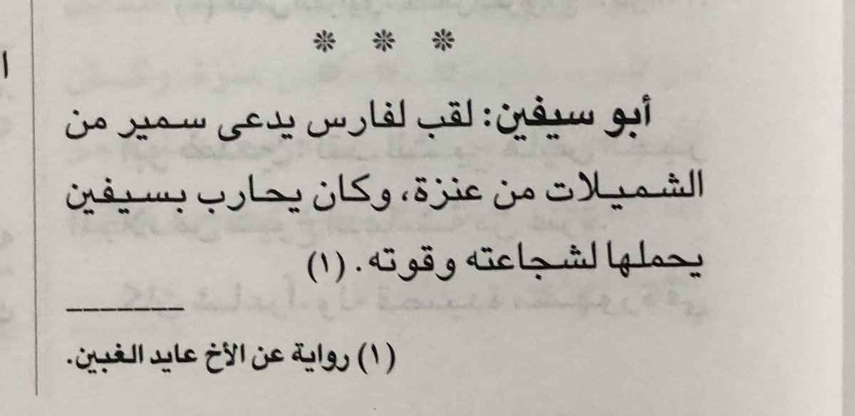 لقب للفارس سمير من الشميلات من عنزة وكان يحارب بسيفين يحملها لشجاعته وقوته .