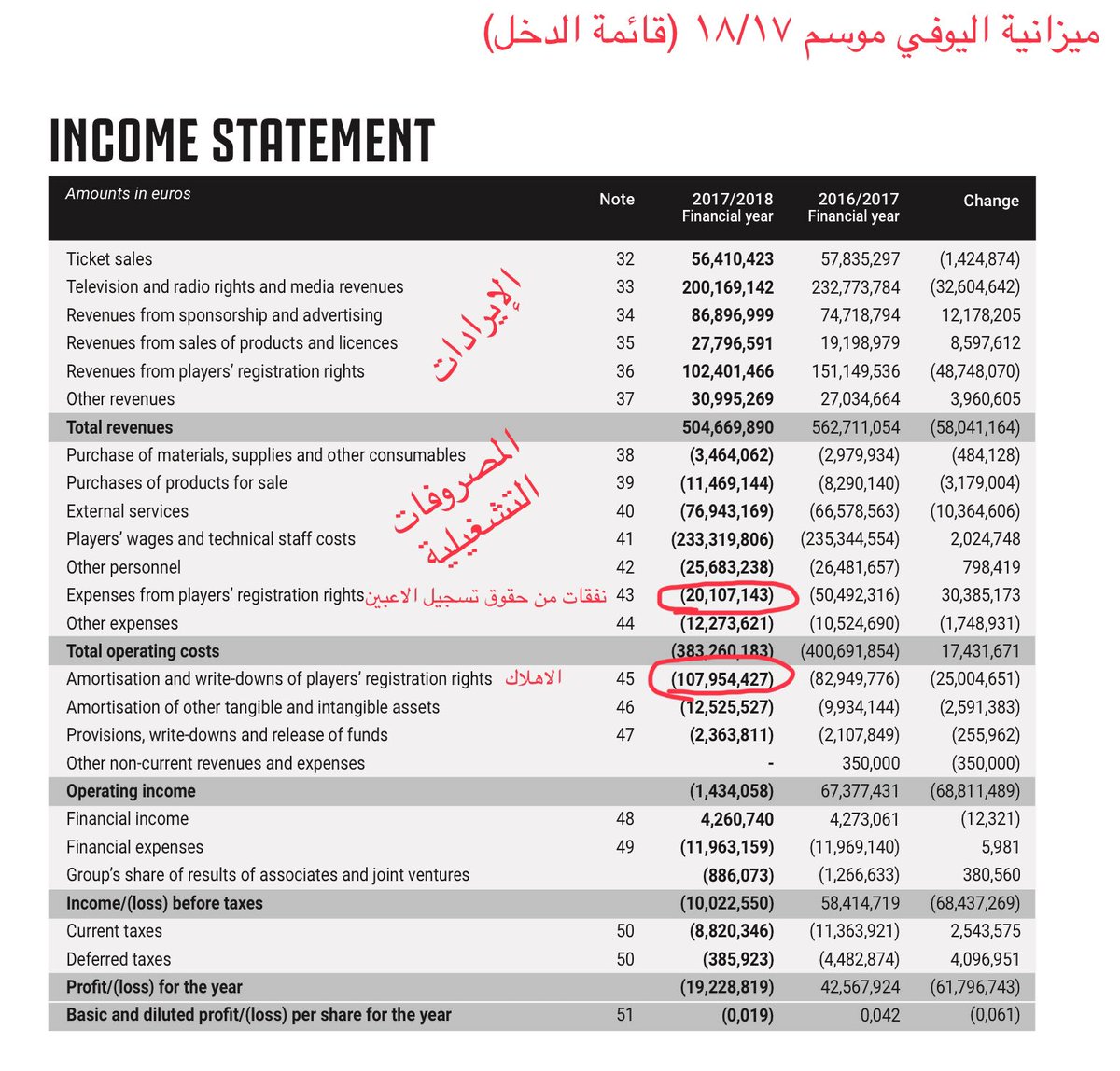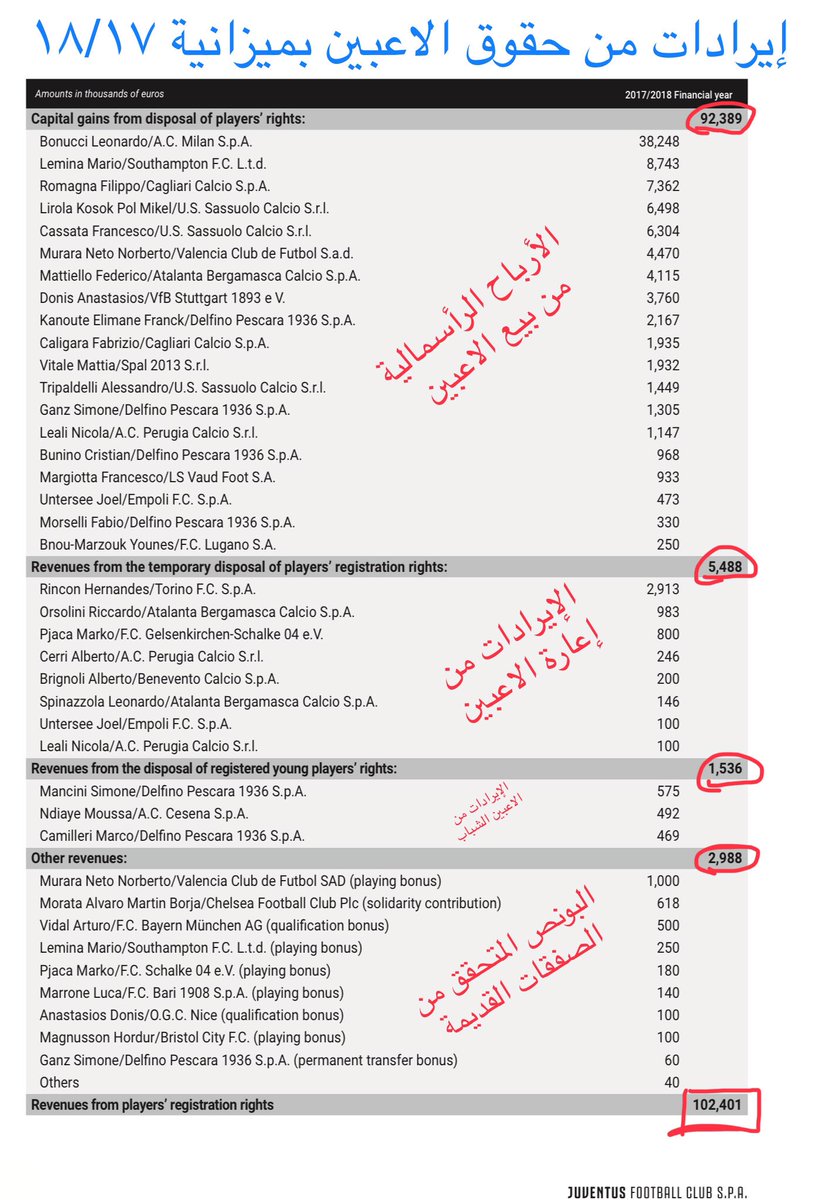 وبما إن عقود الاعبين تعتبر من أصول للنادي