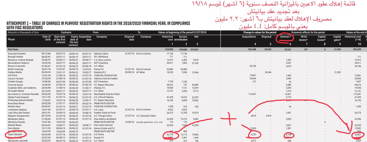 الإهلاك يشمل كامل تكلفة الاعب (مبلغ الصفقة،عمولات الوكلاء،مساهمات تضامنية،…)