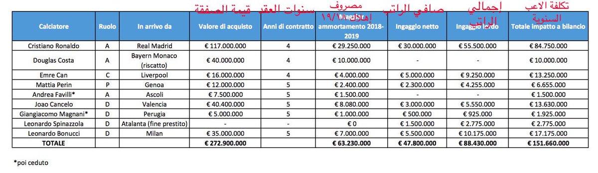 لو افترضنا اليوفي اشترا بالميركاتو بـ١٨٠مليون وكلهم بعقود ٥ سنوات