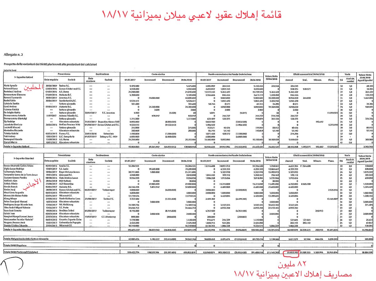 حسب قوائم الميلان الاعب كلفهم ٢٠٠ ألف