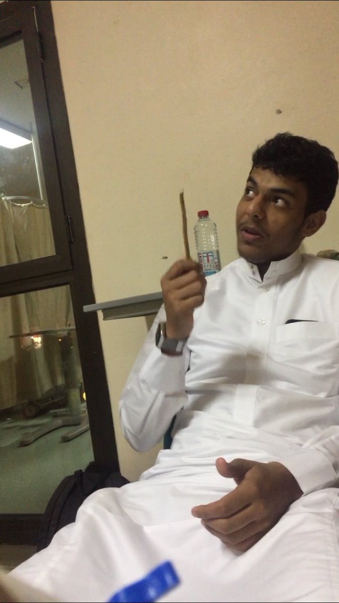 نظري الي وقال" انتظر شوي بس" استفزني ذلك الرد جدا" ولكن بحكم حالتي لا وقت لاييٍ من تلك المشاعر، وبعد اكثر من ١٠ دقائق في الاسعاف وبعد ان أصبحت عاجزاً عن الرؤية تماما، وضع على انفي قناع الاكسجين وبدات بالتنفس مرةً أخرى.