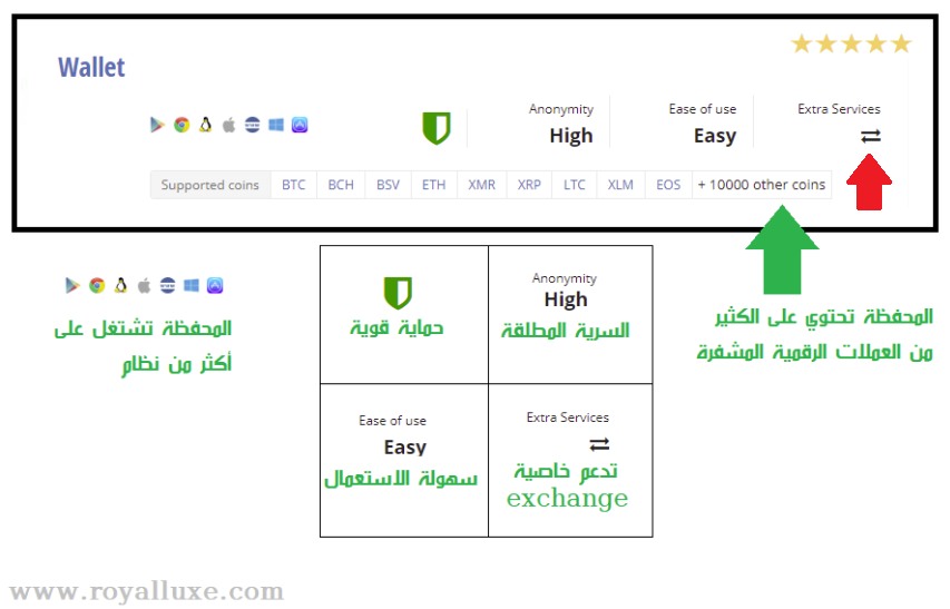 ولها شروحات في اليوتوب بعدة لغات وتستطيع طبعا تحويل عملاتك فيما بينها وتمتاز بالأمان والسرية والقوة