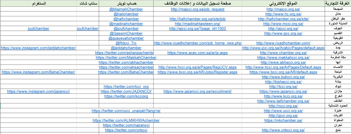 هذا الملف فيه حسابات التوظيف للمدن والمناطق على تويتر