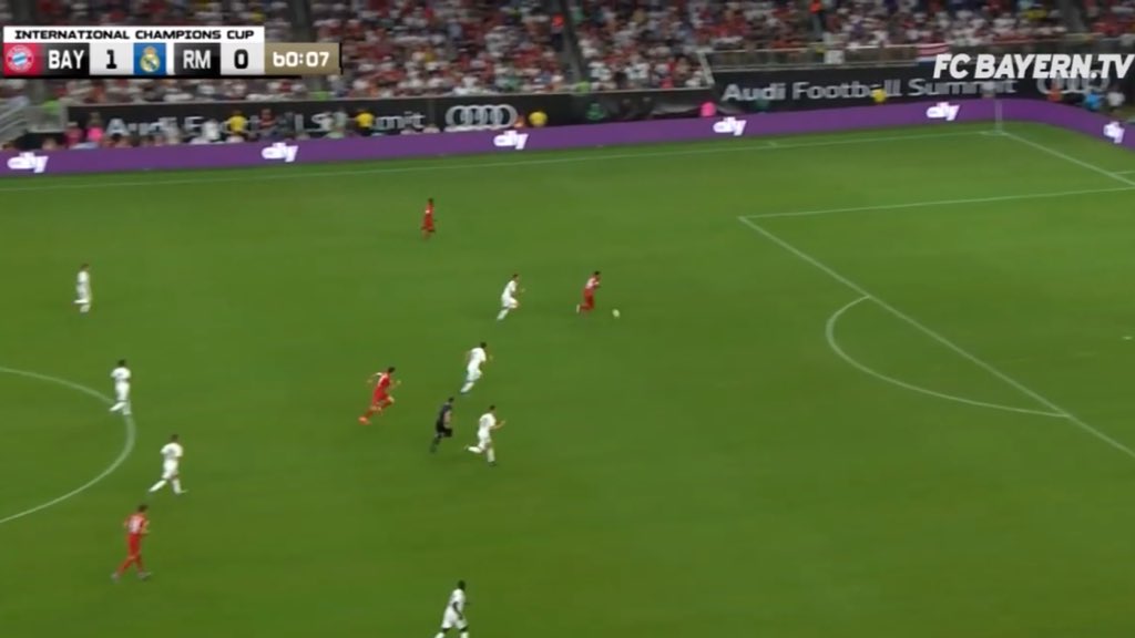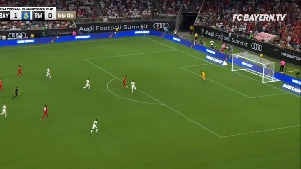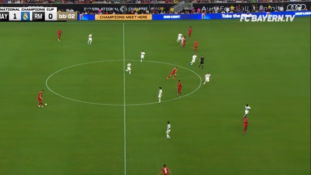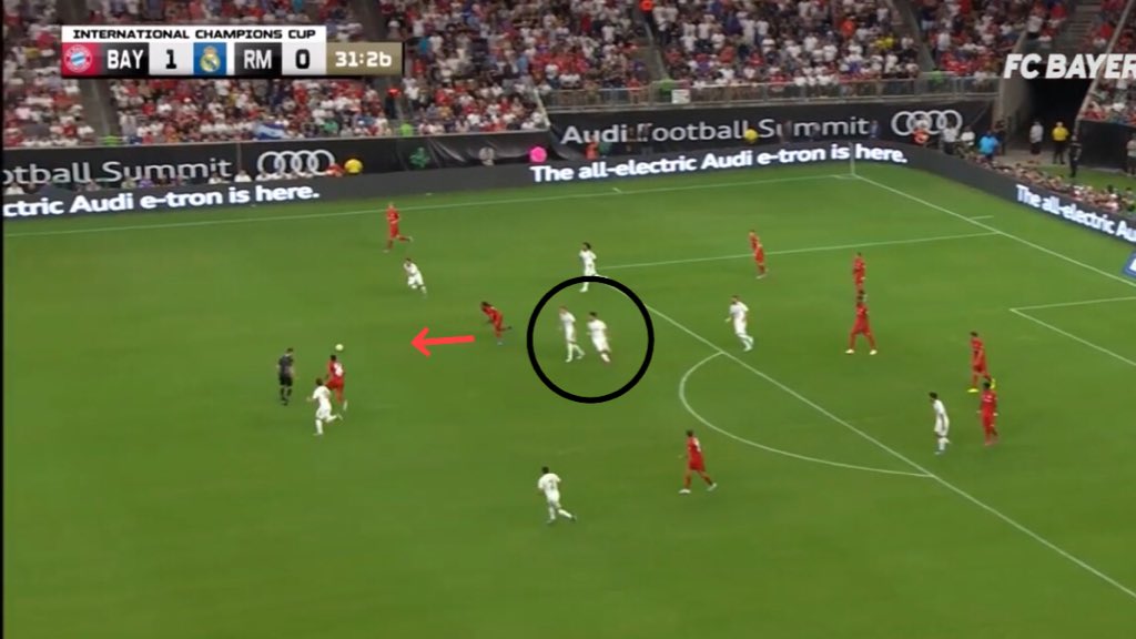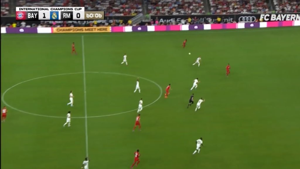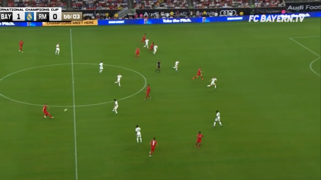 بايرن لم يبدأ ضاغطاً على دفاعات مدريد كما فعل ضد ارسنال ، والسبب يعود لجودة لاعبي الريال وقدرتهم على الخروج بالكرة