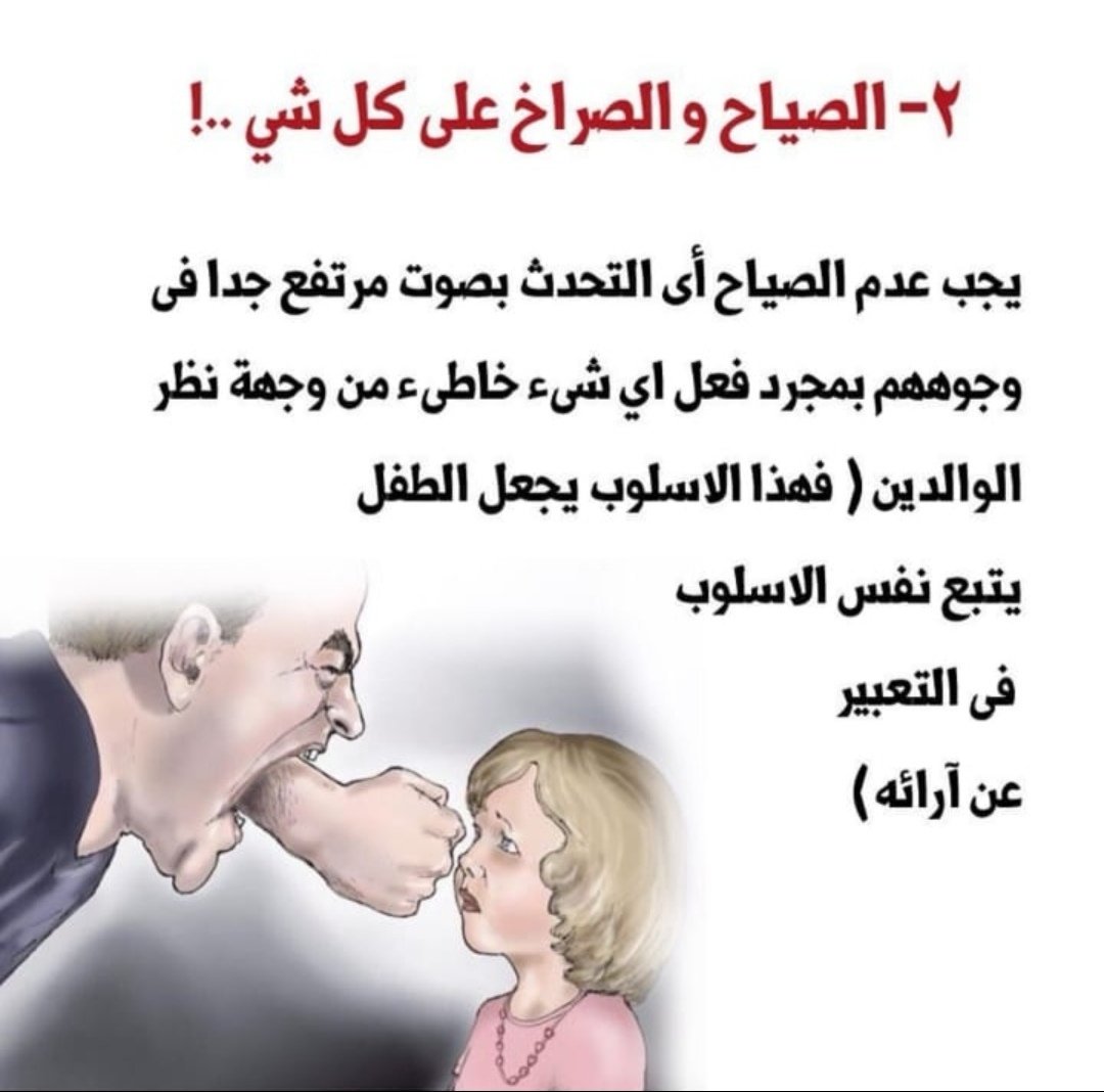 احذرو من فعل أحد التصرفات التاليه أمام اطفالكم. قال تعالى وبالوالدين احسانا، إن كنتم تريدون ان يحسنوا لكم اطفالكم فأحسنوا لبعضكم. لاتربي طفلك ان يكون ضعيف الشخصية، ازرع القوة بداخله