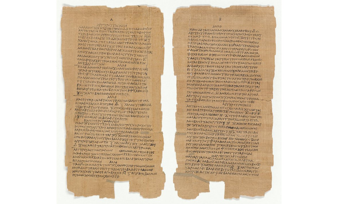 The Stockholm Papyrus was written in 300 AD. It continues the Egyptian legacy in metal industry & jewelry invented by the Egyptians.