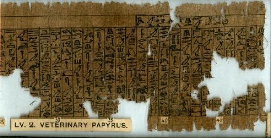 The Kahun (Lahoun) Veterinary Papyrus (1900 BC) is the first book of veterinary medicine in entire history.