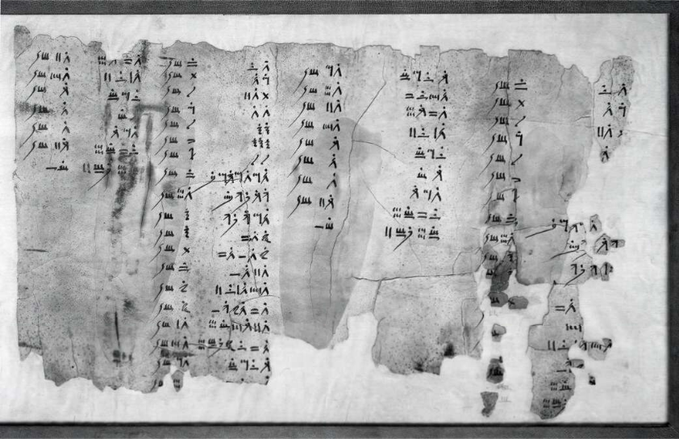 Pic: An Old Kingdom papyrus (Dynasty 5), spreadsheets monthly accounts report of quantum sums for solar temple at Abu Ghurab.