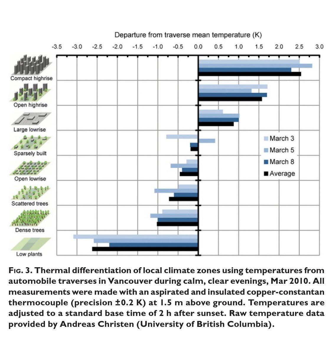 واثبتت ان التصميم العمراني وتشكيل الفراغات بين المباني بالشكل الصحيح هو افضل طريقة لتفادي الحرارة المرتفعة على مستوى الحي والمدينة، افضل من التشجير والمظلات و الأرضيات الفاتحة وغيره.