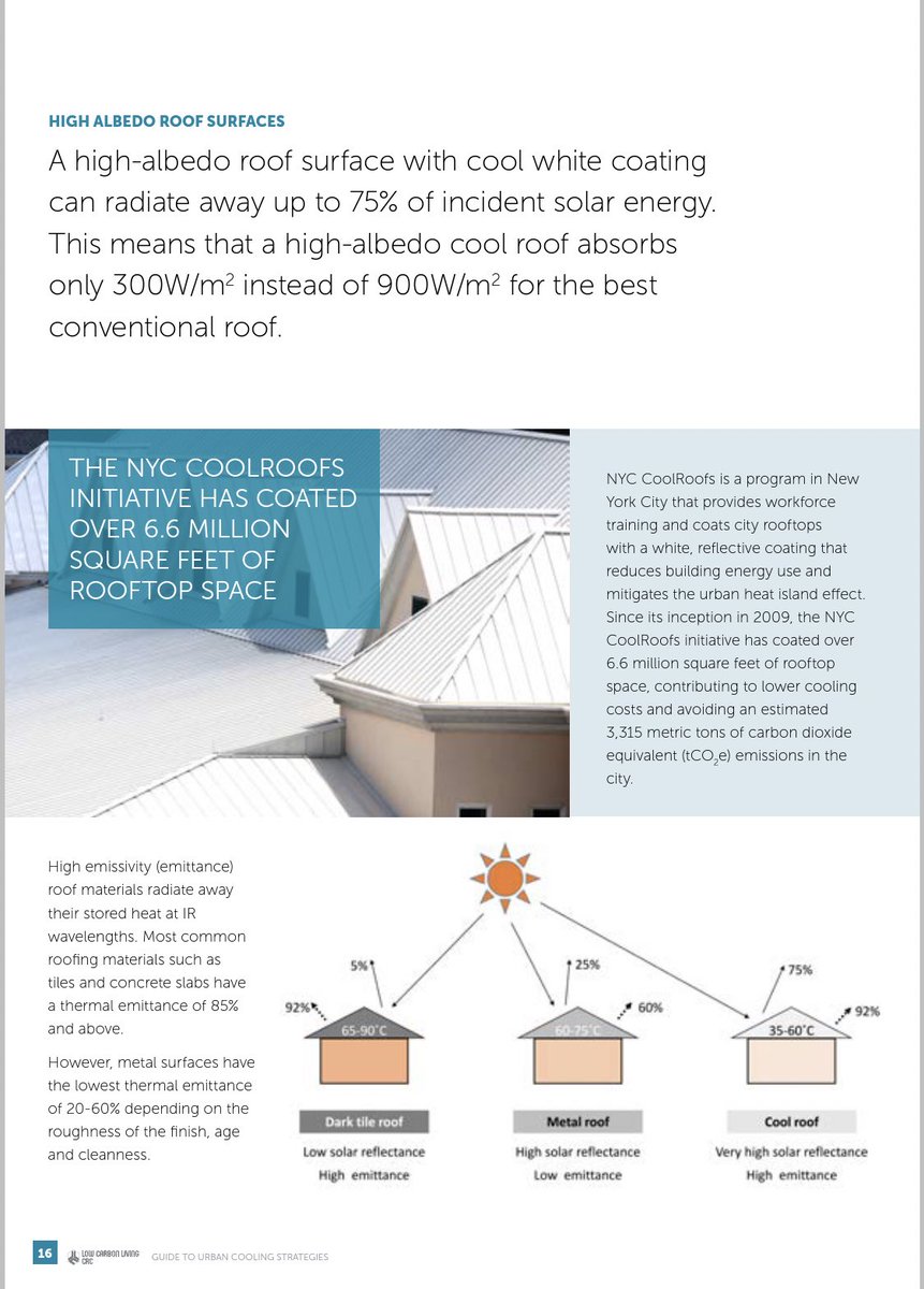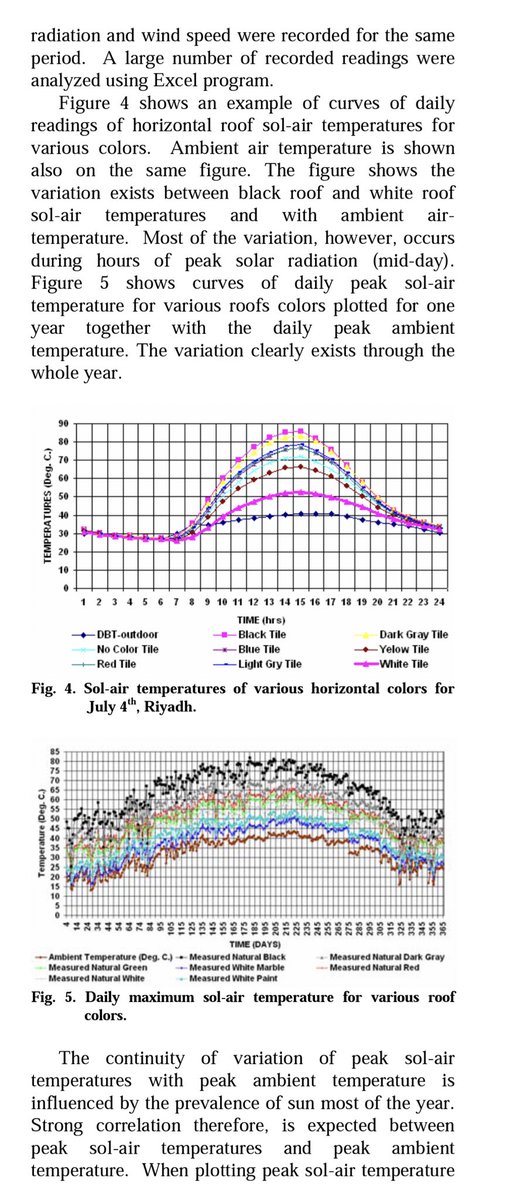 مقال لأساتذتي @ArianeMiddel عن التأثير السلبي للانعكاسية Albedo العالية للأرضيات من خلال دهن الطرق باللون الأبيض وإضراره بالمشاة لانه يعكس الأشعة عليهم وعلى المباني على مستوى الأرض