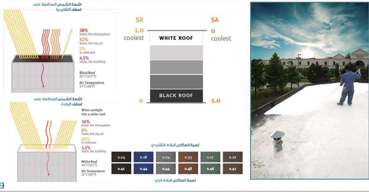 الدكتور @kmsaud2 عمل تقييم لعدة الوان على حرارة اسقف المبنى في مدينة الرياض.