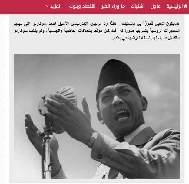 كان من بين الرؤساء الذين صُوروا في أوضاع خاصة الرئيس الأندونيسي الأسبق أحمد سوكارنو كان مولعاً بالنساء وكان يسقط في أحضان أي امرأة توضع في فراشه ولم يصور فقط في القاهرة بل صورته المخابرات الروسية أيضاً في موسكو لكن عندما أرادوا ابتزازه وعرضوا عليه الصور الفاضحة كان رده صادم🤔