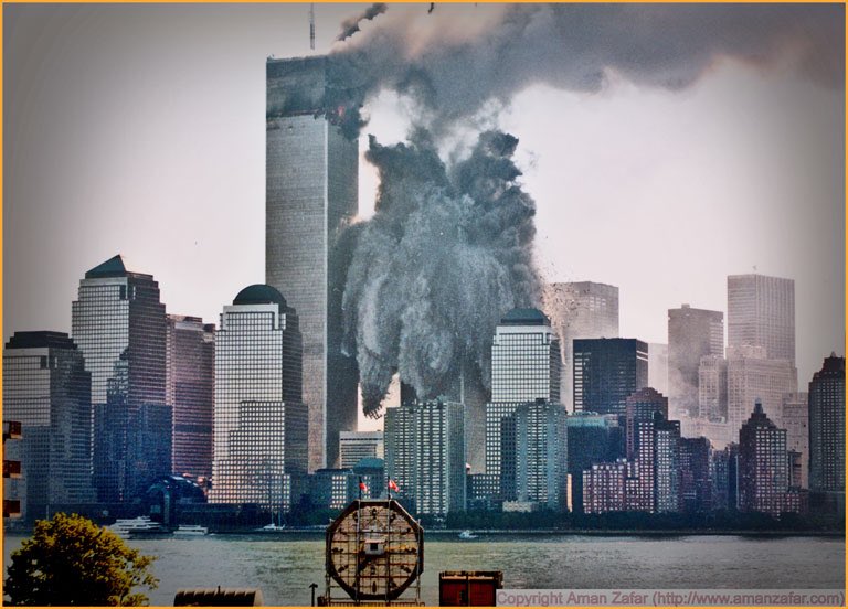 هل تتخيل بأن ثلاث ناطحات سحاب سقطت بثواني معدودة فقط دون اي حدوث عامل من عوامل مايسمى بمقاومة الهواء ، يقال ان الاستخبارات الامريكية كانت تستشعر بوجود هجمة على الولايات المتحدة الامريكية ولكن بقت مكتوفه الايدي دون اتخاذ اَي اجراء بشأن ذلك !