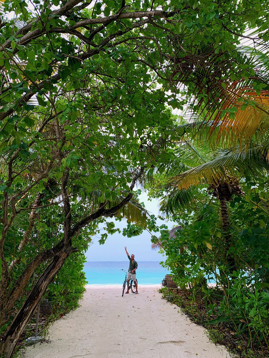 في #المالديف احب اخذ سيكل واتمشى في الجزيرة اللي فيها المنتجع، شعور عجيب ماتسمع غير صوت الطيور وموج البحر والهواء يهفهف عليك وحولك خضار وطبيعة وموية تركوازية تحس انك في لوحة مو في مكان حقيقي! ???