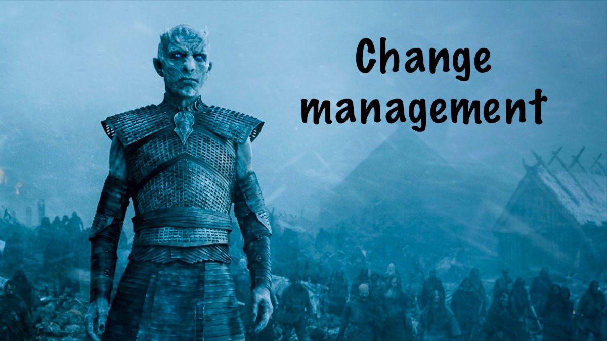 بالنهاية في منظمتك لا تنتظر حتي يجي اللونق نايت ويدق النايت كنق الباب, اتبع أساليب التغيير وحاول حشد قوى التغيير وانتبه لكلام وملاحظات الجميع والأهم لازم يكون عندك تنانين ?